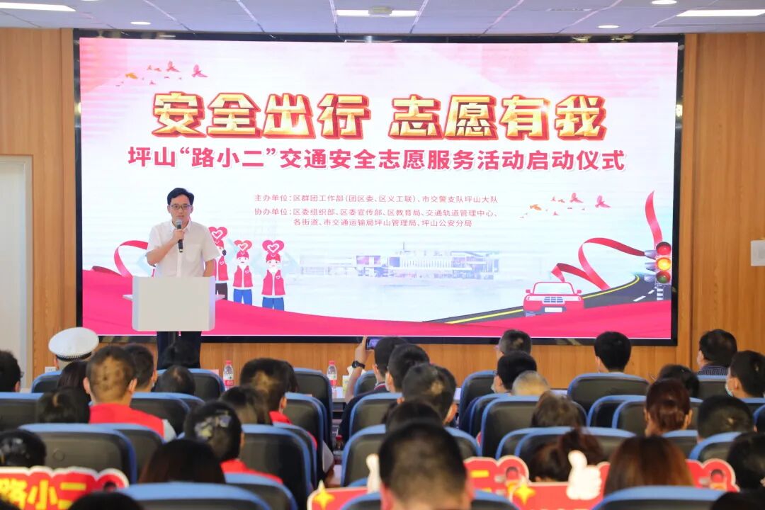 5月19日上午,坪山区群团工作部联合交警、交通、交轨等多个部门共同开展的坪山“路小二”交通安全志愿服务活动启动仪式在坪山区群团活动中心顺利举行。