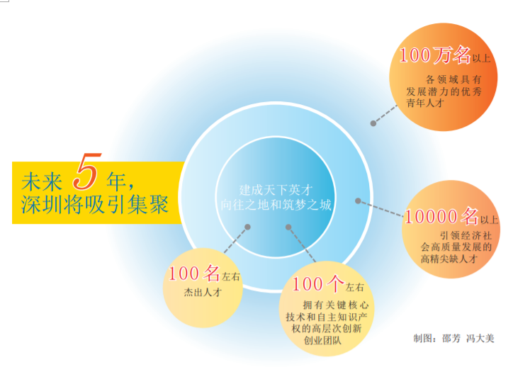 小政了解到,未来5年,深圳将聚焦重点产业和民生领域,吸引集聚100名左右杰出人才,100个左右拥有关键核心技术和自主知识产权的高层次创新创业团队,10000名以上引领经济社会高质量发展的高精尖缺人才,100万名以上各领域具有发展潜力的优秀青年人才,努力把深圳建成天下英才向往之地和筑梦之城。