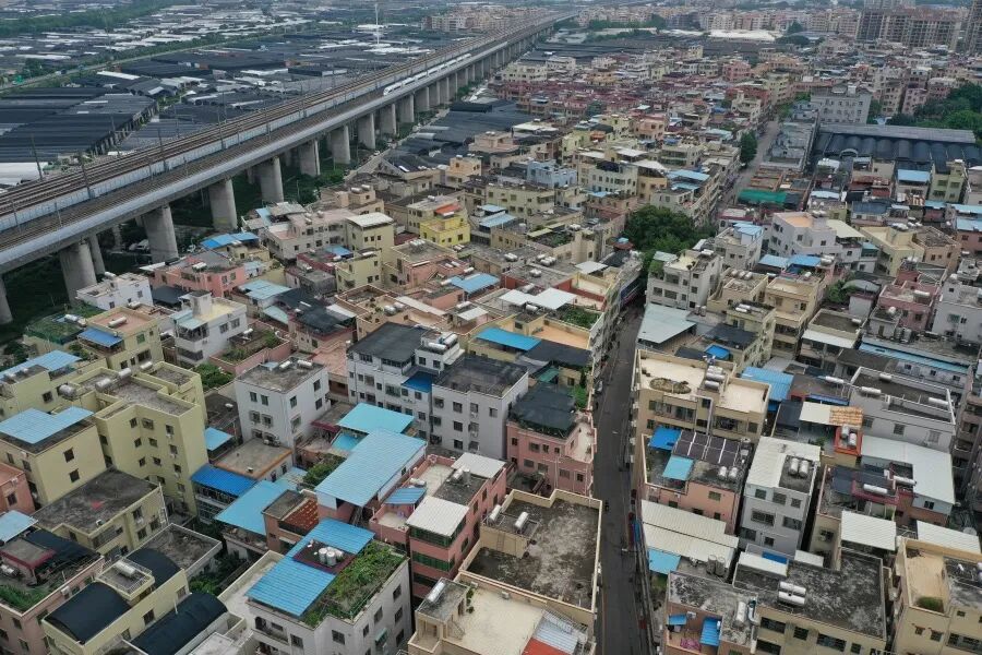 2021年6月2日,航拍实行封闭管控的广州荔湾区白鹤洞街海南村。 (南方周末记者 翁洹/图)
