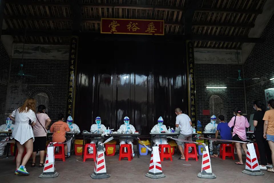 ▲ 2021年5月31日,广州海珠区大塘村,核酸检测点设在祠堂内。(南方周末记者 翁洹/图)