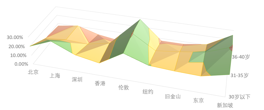 全球主要科技创新中心城市对不同年龄段青年科学家的吸引力