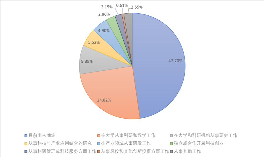 此外,报告还显示,全球受调查的青年科学家中,超过半数人当前对未来职业发展方向已有明确计划。其中64.46%选择在大学和科研机构从事研究、教学工作,19.92%选择投身与产业发展相结合的技术研发,6.63%选择参与科技创业或创业投资,4.11%选择从事科技管理、服务方面工作。与其他国家青年科学家相比,来自中国城市的青年科学家更加倾向参与科技创业。