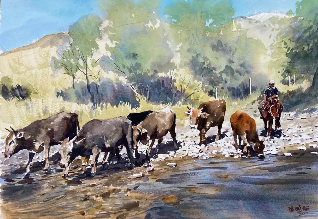 陆晓翰《原野1》52cm×74cm 纸本水彩