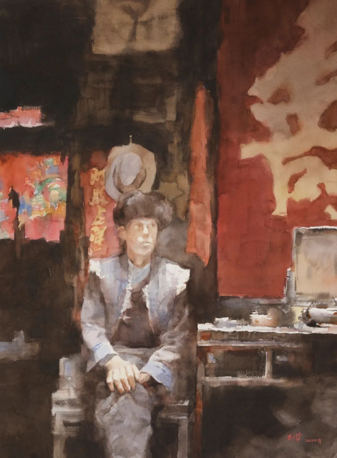 廖剑华《老屋》78cm×55cm 水彩 2020年
