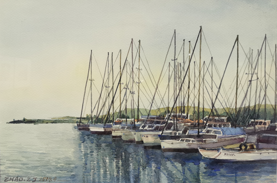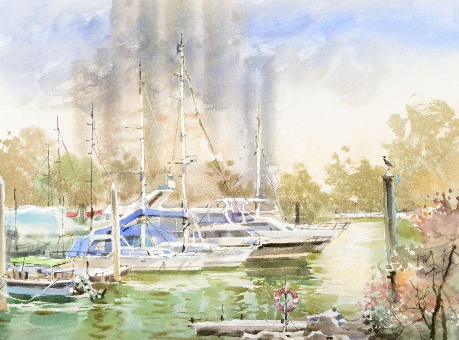 黎鹰(澳门)《澳门游艇会》55cm×75cm 水彩