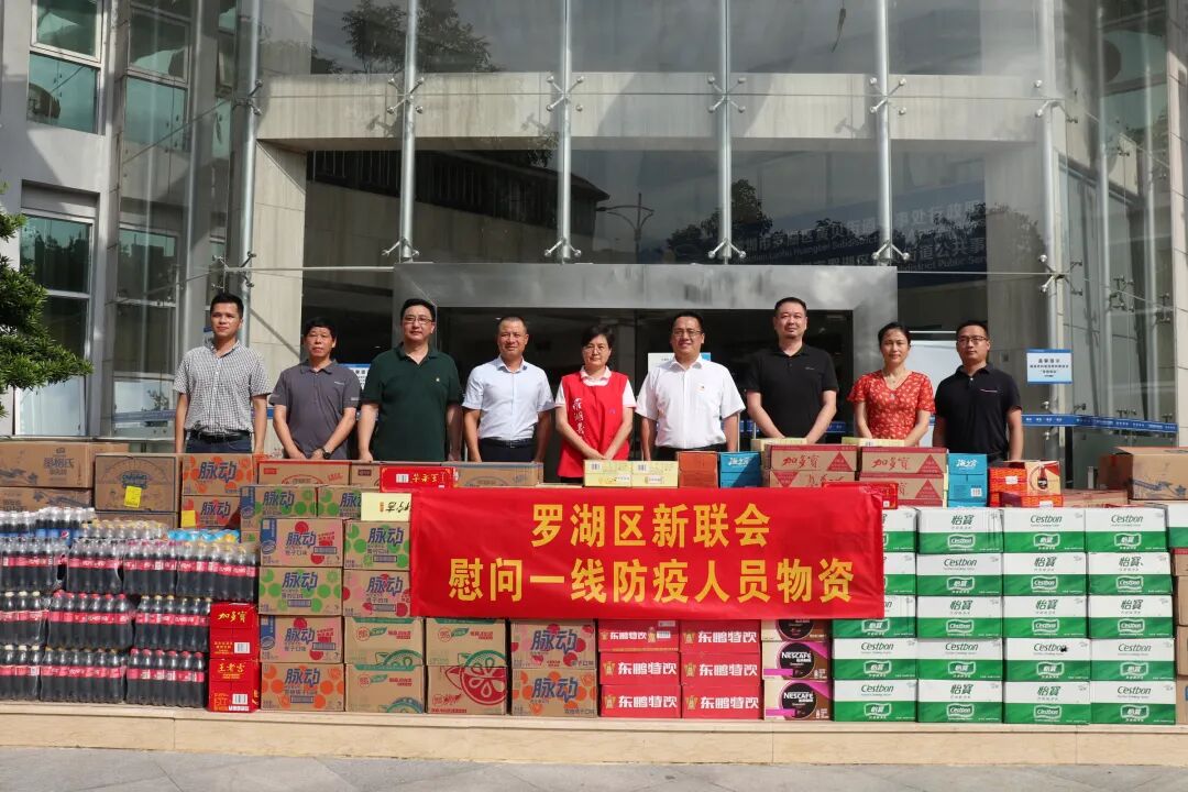为向在抗疫一线辛勤付出、倾情投入的防疫人员和基层社区工作人员致以崇高敬意并表达亲切慰问,6月7日,罗湖区新联会在罗湖区委统战部的指导下,发动新联心·爱同行公益团向全体会员发出倡议,号召会员发扬“微公益,献爱心”的优良传统,通过会员微信群接龙形式募集专项公益资金。区新联会会员们积极响应,短短几个小时便募集到资金3万余元,并由秘书处统一购买饮用水、果汁、面包等物资。6月8日下午,在黄贝街道办举行了物资捐赠仪式。