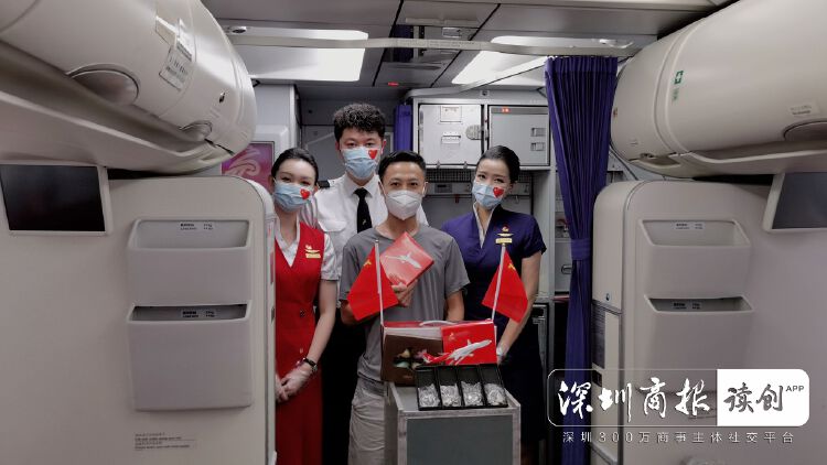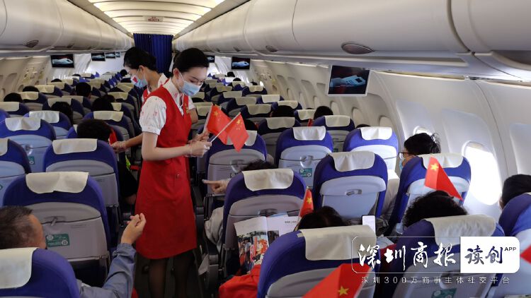 6月8日,深圳航空在ZH9643深圳-长春航班上举行“党的光辉照云端”主题航班活动,与旅客朋友在万米高空共同唱响爱党、爱国、爱社会主义的时代主旋律。主题航班由“党团示范组邰宝龙乘务组”执飞。