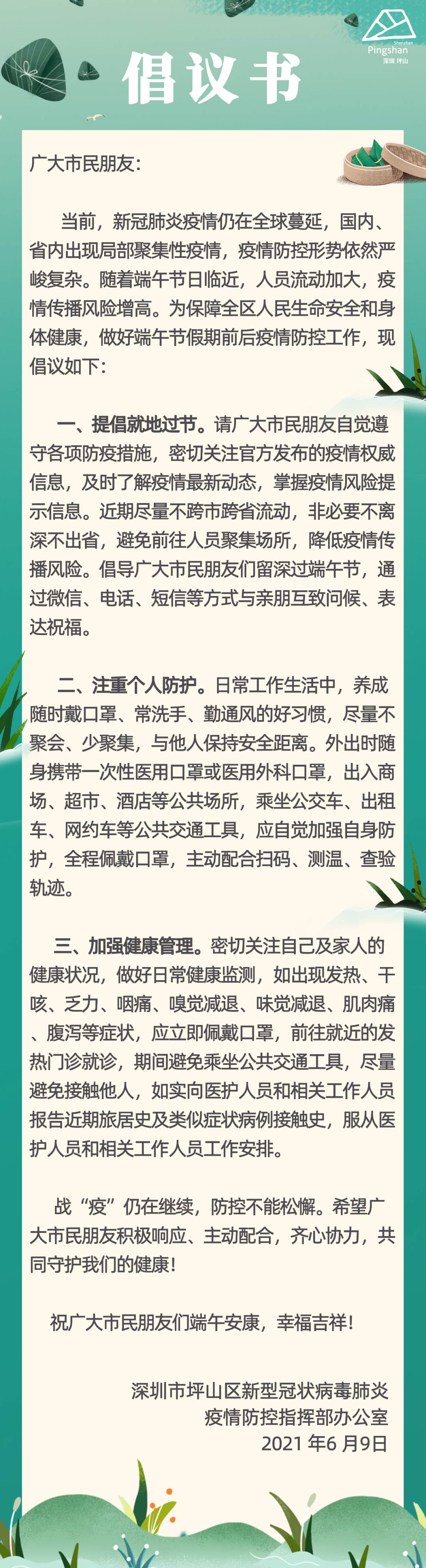 (来源:坪山发布 坪山区新型冠状病毒肺炎疫情防控指挥部办公室)