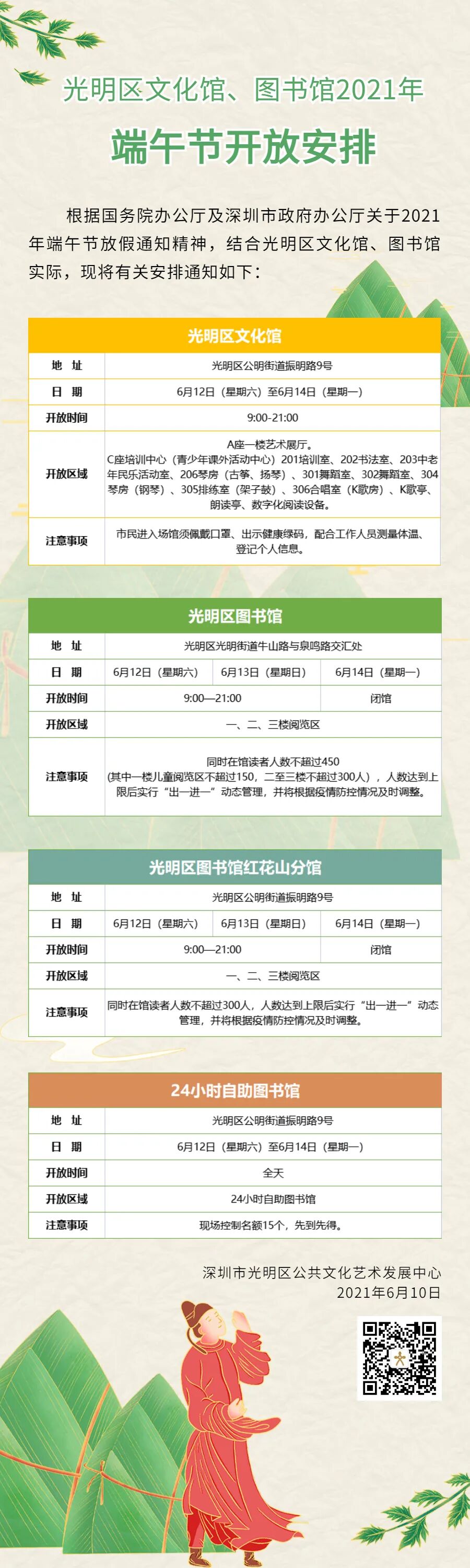 悠悠夏日,绿意盎然端午佳节,鲜粽飘香五月初五端午节将至一起来看看👋光明区文化馆、图书馆2021年端午节开放安排
