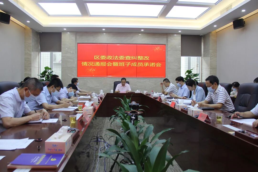 按照政法队伍教育整顿部署要求,6月11日上午,龙岗区委常委、政法委书记胡庚祥主持召开区委政法委查纠整改情况通报会暨班子成员承诺会,对政法队伍教育整顿查纠整改情况进行通报,班子成员分别作出政治承诺。全体班子成员及其他处级以上领导,各科室负责人、政法干警代表参加会议。