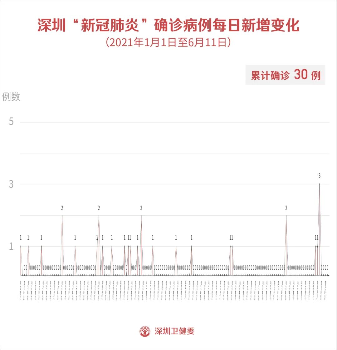 6月11日0-24时,深圳新增1例境外输入确诊病例和4例境外输入无症状感染者。