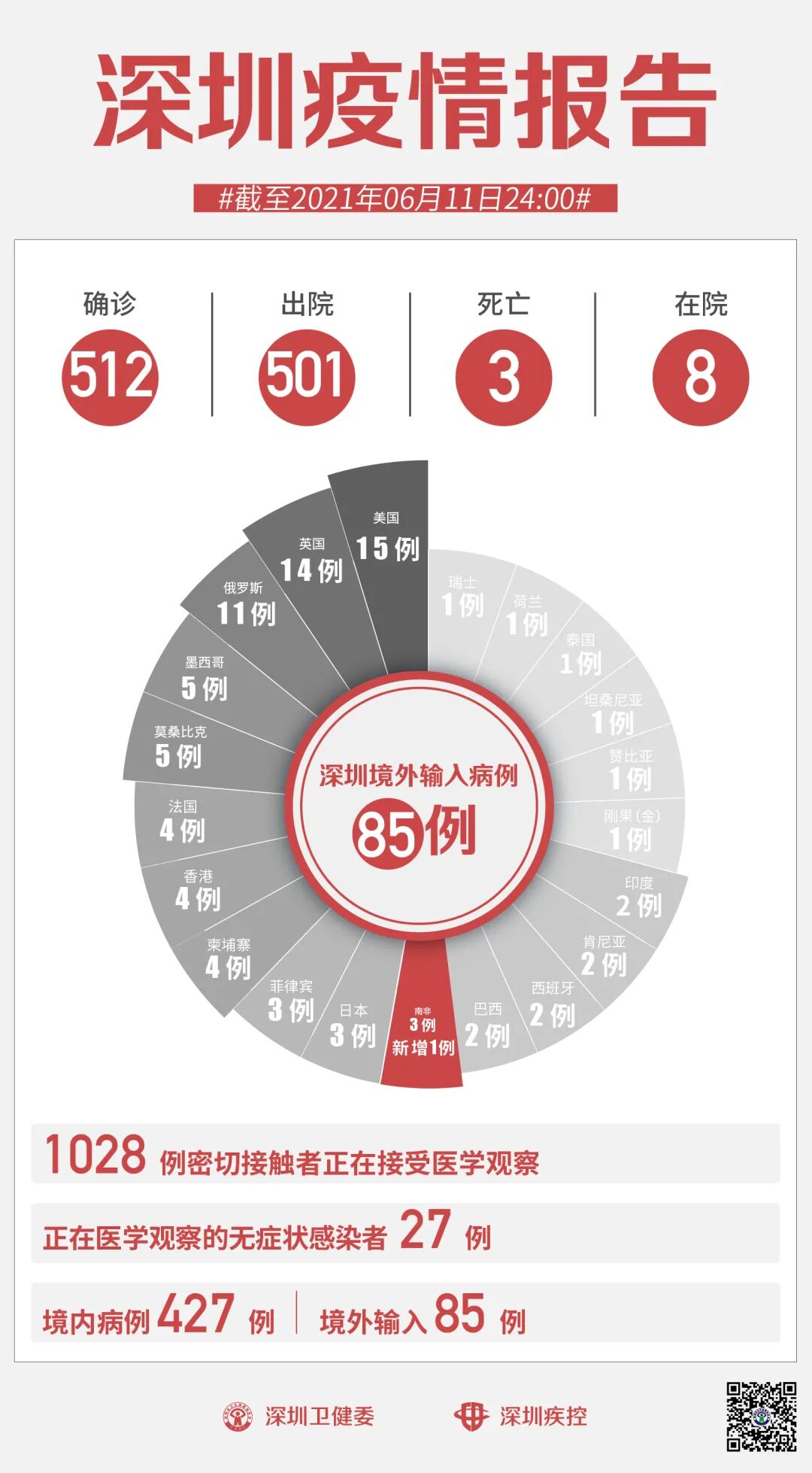(原标题《6月11日深圳新增1例境外输入确诊病例和4例境外输入无症状感染者》)