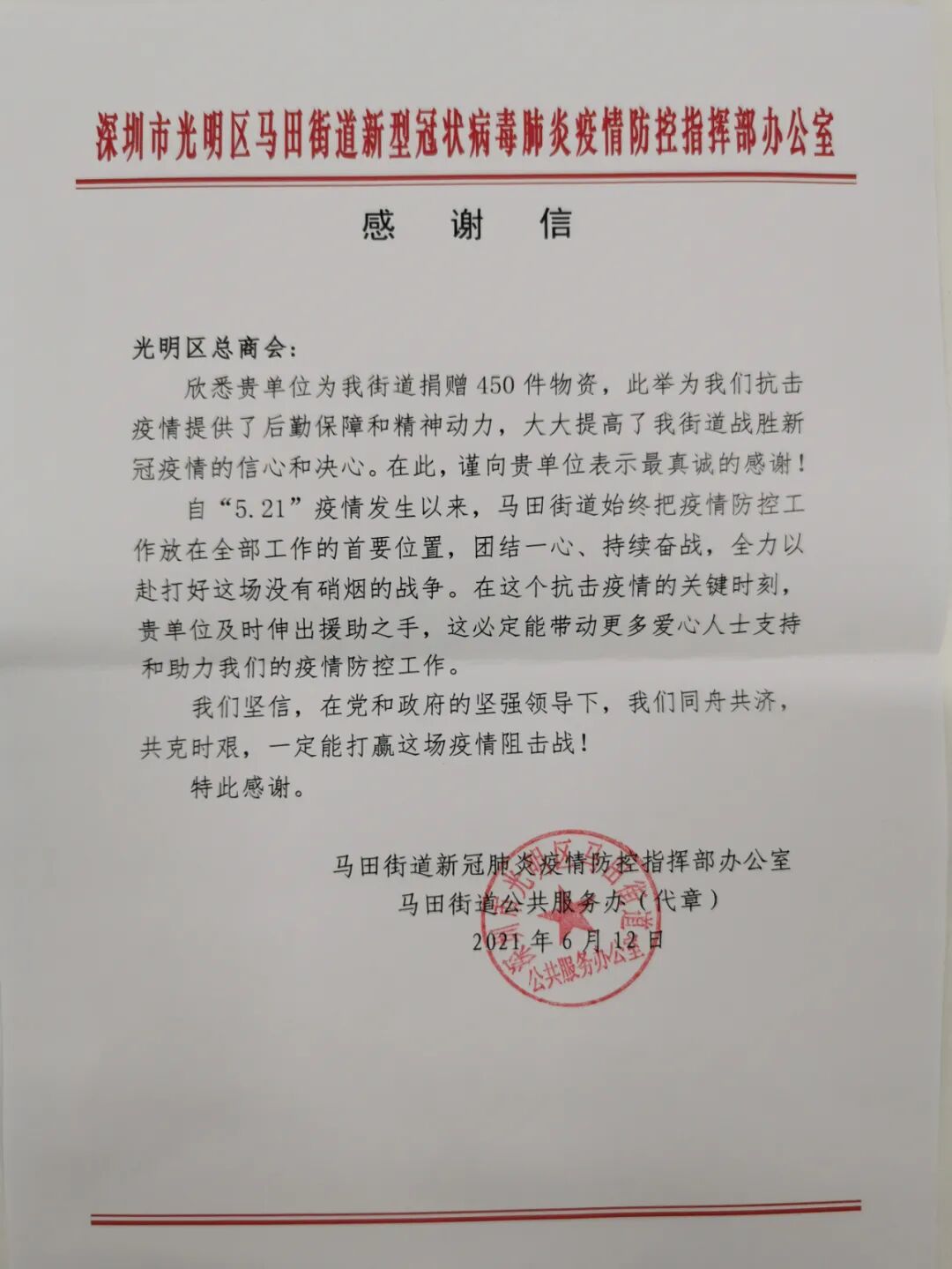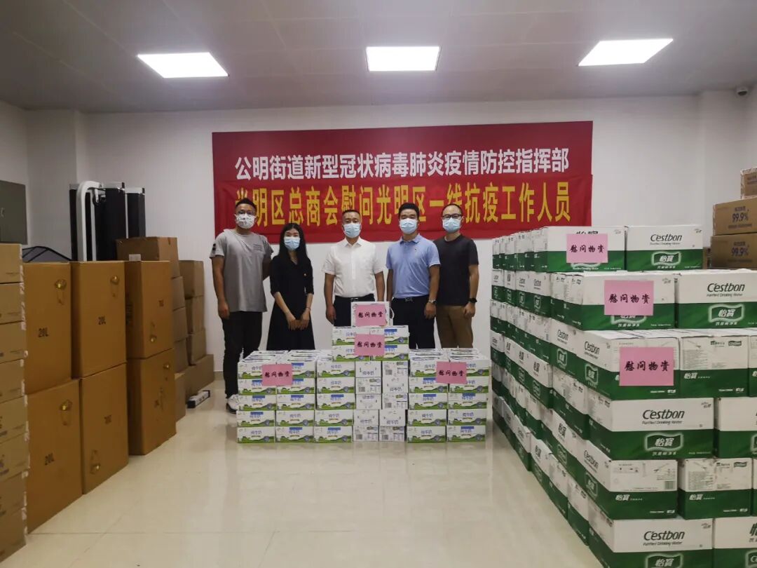 为向坚守岗位、奋战一线的防疫工作人员表示关爱和感谢,6月12日上午,光明区总商会向光明区一线防疫工作人员捐赠防暑降温物资2700余件