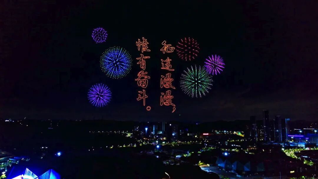 活动当晚,一场恢弘而盛大的3D光影秀在大运中心的夜空中恣意绽放,5200架无人机以声、光、电和无线通讯技术为支撑,以“灯光+动画”的形式展示了中国共产党百年光辉历程中的重大历史事件,为党的百年华诞献上最美的祝福。
