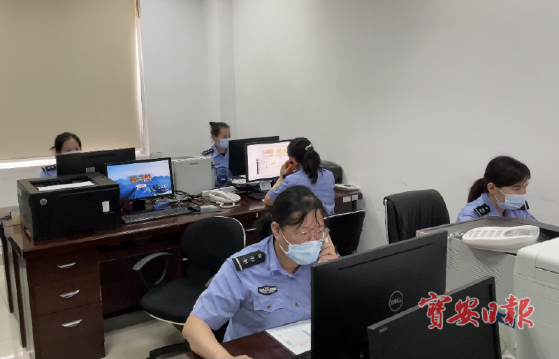 临近午饭时间,上寮社区网格综管站办公室里,内勤人员或手持电话进行沟通、或敲击键盘进行核查情况的汇总和收集,办公室内没有一人离开,大家都坐在椅子上处理着工作,仿佛早已忘记了时间。