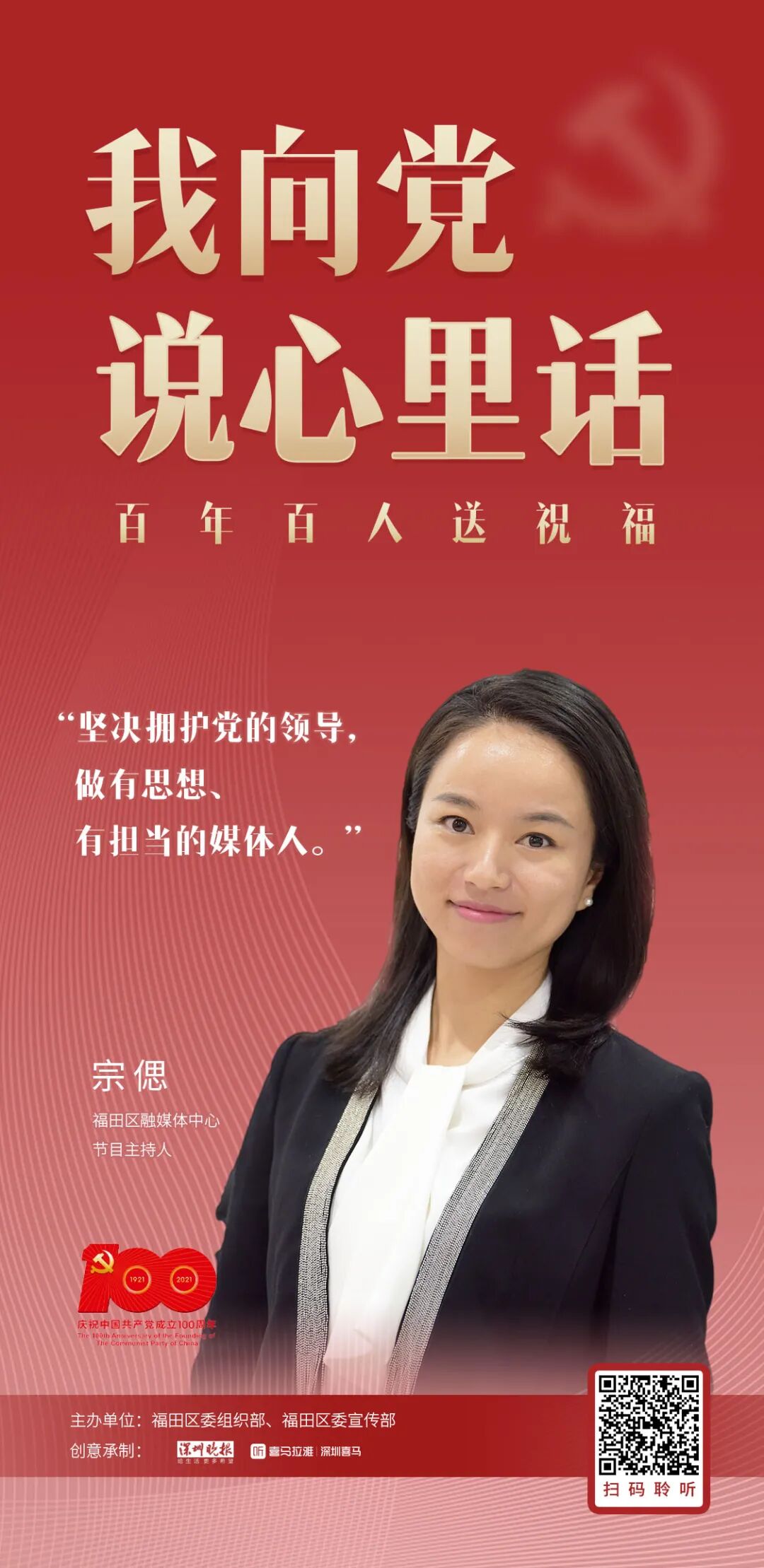 近日,由深圳市福田区委组织部、福田区委宣传部联合策划、创新推出的《我向党说心里话 | 百年百人送祝福》有声栏目第十四期上线。为庆祝中国共产党成立100周年,福田区挑选100位来自不同民族、不同行业的各界爱党人士代表,他们当中有中共党员,也有群众和党外人士,向党说出他们的心里话,并用家乡语言表达对党的生日祝福。