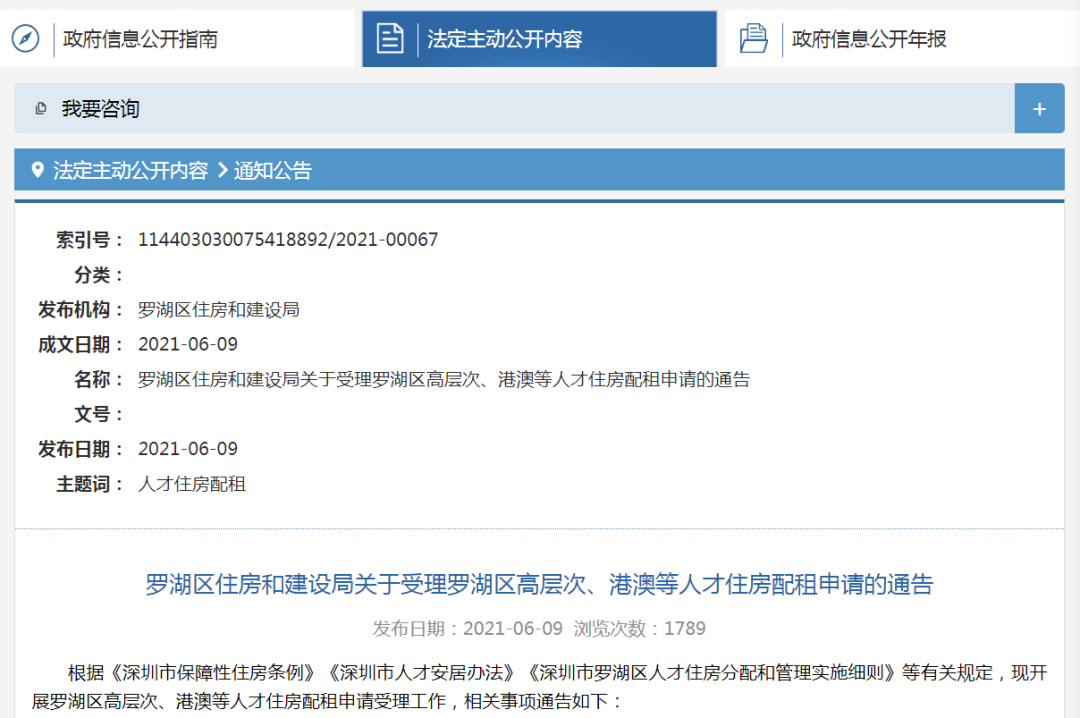 罗湖人才住房配租申请正在进行,本次房源分别位于招商盛世、万科泊寓(布吉店),申请受理的时间为2021年6月9日至2021年6月23日。详情 >>