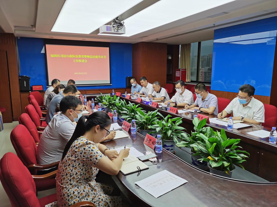 6月23日下午,福田区召开全区司法行政队伍教育整顿总结提升环节工作推进会。会议由区司法局党组书记、局长蔡晓主持,区委政法队伍教育整顿工作领导小组办公室副主任徐晓东,区司法局机关全体在编干部、老工勤人员,区法律援助处全体在编干部,福田公证处主任、副主任和全体公证员,各街道司法所全体在编干部参加了会议。