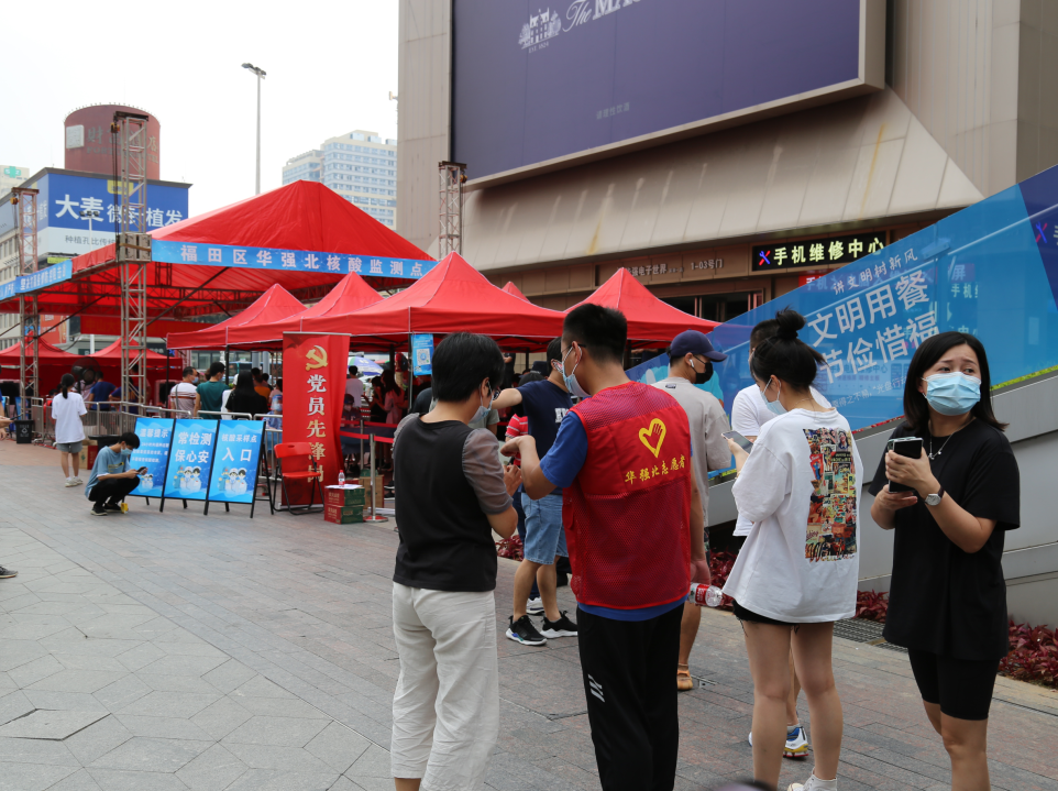 让市民安心的,还有华强北的核酸检测点。“5·21”疫情发生后,华强北街道率先在华强北步行街设置大型样本框检测点3个,针对商圈从业人员、游客和重点人员提供就近检测服务。为减少市民等候时间,街道专门购买第三方医疗机构检测服务,给每个点位配置医护人员各6名,保证了队伍稳定性和采集效率。主街平均每天可采集样本8500人,市民等候时间一般不超过15分钟。
