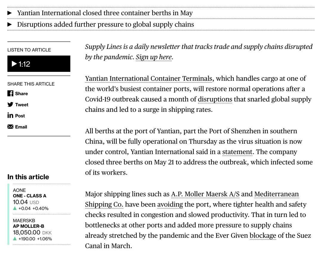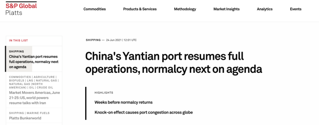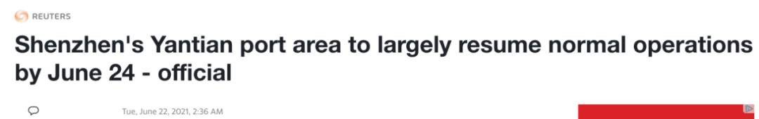 此外,路透社在6月22日就曾发快讯,关注盐田港复工复产。