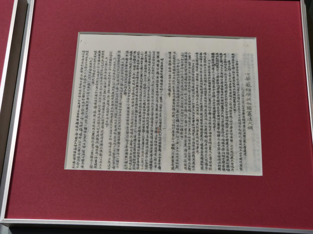图为中华苏维埃第一次全国代表大会通过的《中华苏维埃共和国宪法大纲》。《中华苏维埃共和国宪法大纲》是中国第一部反映劳动人民当家作主、参加国家管理的宪法性文件,为后来建立革命政权和法制建设提供了经验。