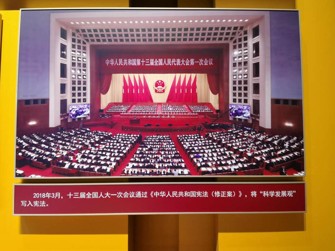 2018年3月,十三届全国人大一次会议通过《中华人民共和国宪法(修正案)》,将“科学发展观”写入宪法。