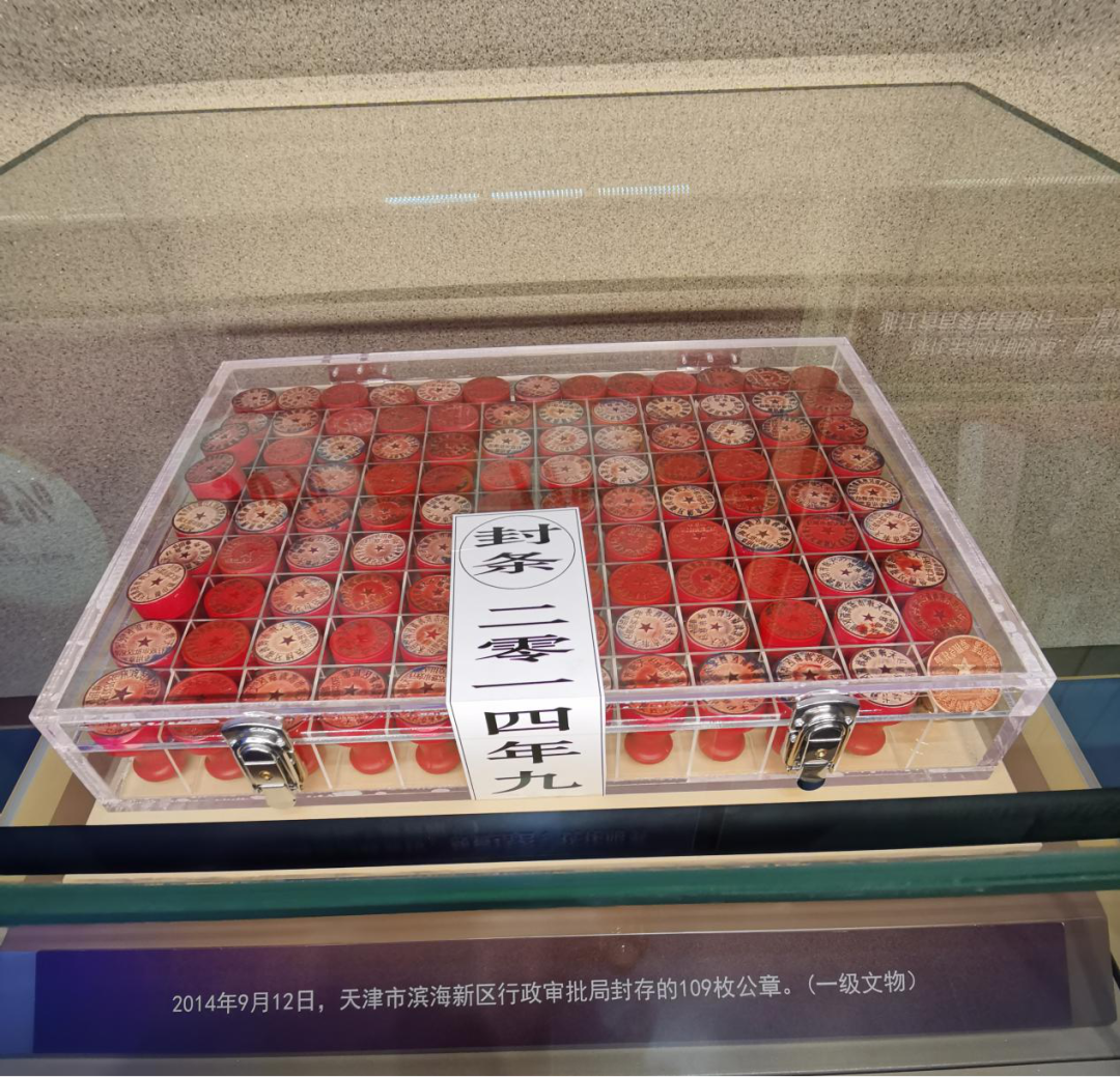 2014年9月12日,天津市滨海新区行政审批局封存的109枚公章。