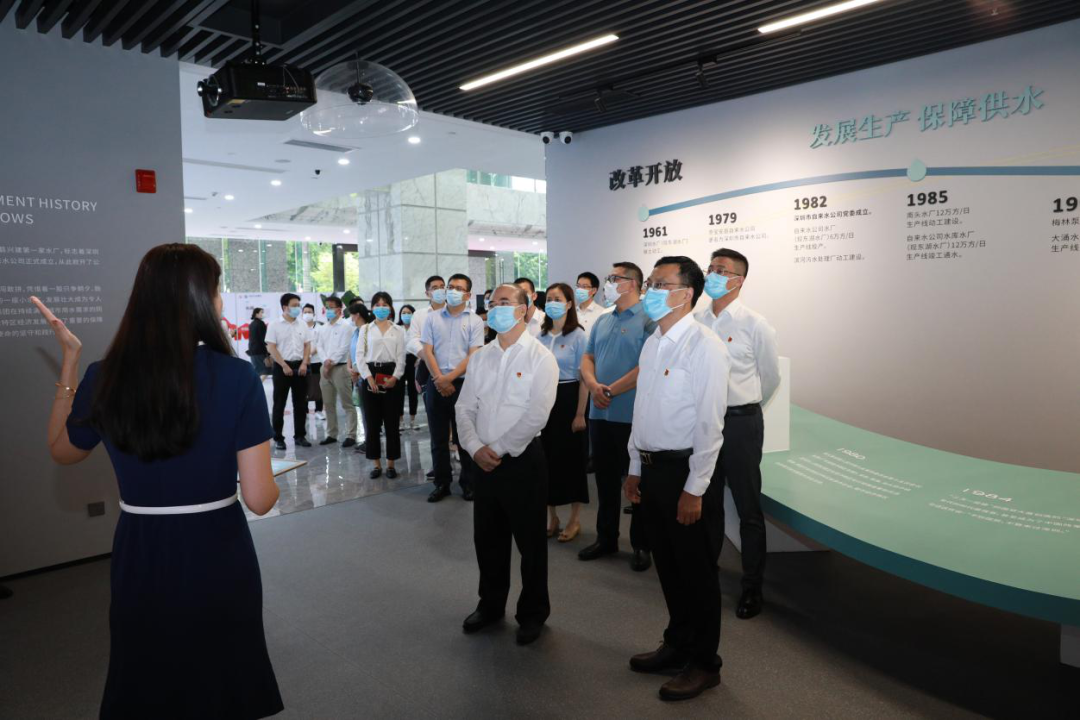 随后,麦振新副书记率队参观了环水集团深水展览馆。吴晖同志代表环水集团党委对市国资委党委一直以来的关心和支持表示感谢。他表示,环水集团将以此契机,积极打造“1+N”党建共享基地,以高质量党建引领集团转型发展、创新发展、安全发展,为深圳“双区”建设,为深圳国资国企持续领跑作出深水人应有的贡献。