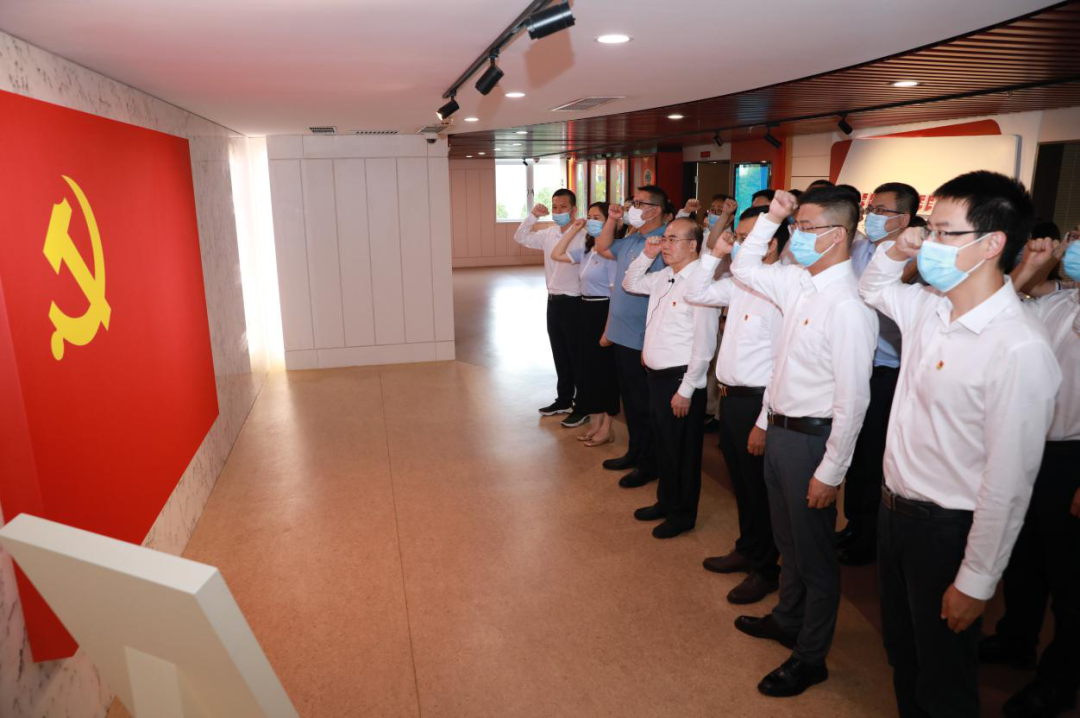 “我志愿加入中国共产党,拥护党的纲领,遵守党的章程.......”在深圳东江纵队纪念馆内,6月25日,市国资委纪委(派驻七组)党支部和交易集团本部第二党支部党员举行重温入党宣誓仪式。面对鲜红的党旗,全体党员庄严肃穆地举起右手,重温入党誓词,铮铮誓言响彻整个纪念馆。