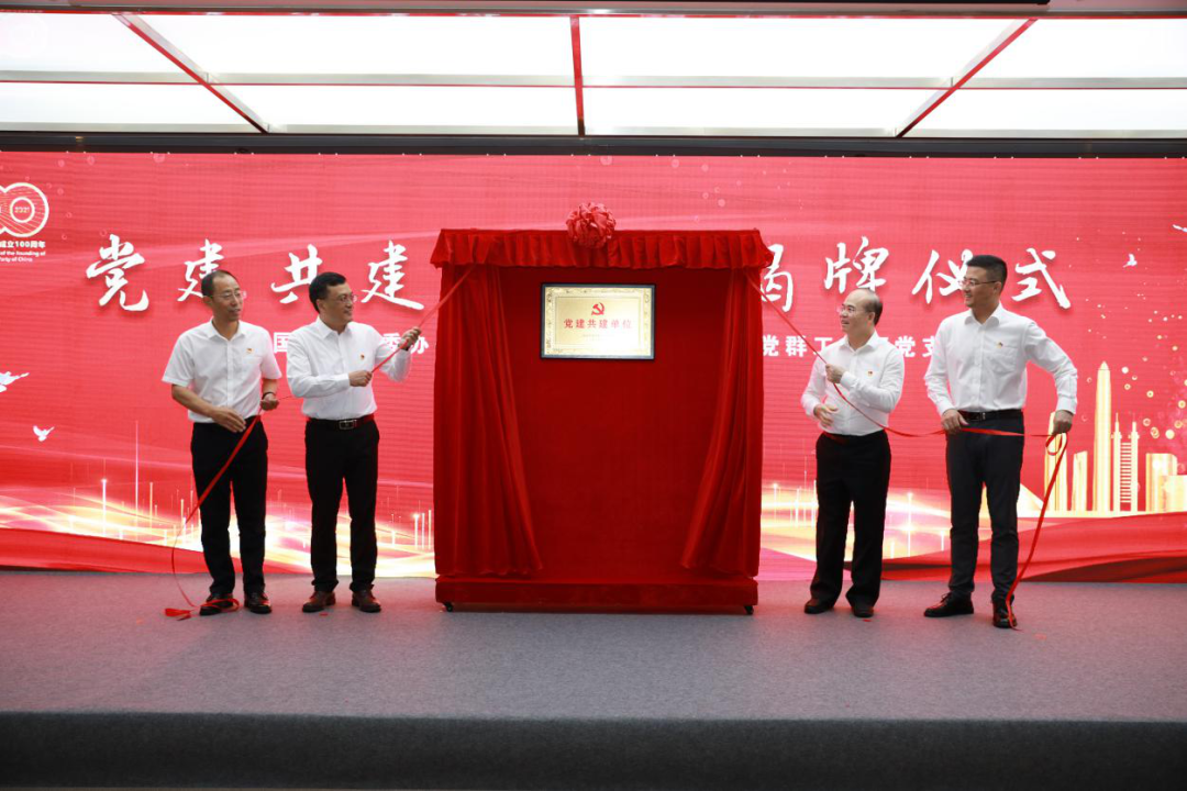 在市国资委党委副书记麦振新、市环水集团党委书记吴晖的见证下,市国资委党委办公室党支部和市环水集团党群工作部党支部签订了“一对一”支部共建协议书,并隆重举行“党建共建单位”揭牌仪式。