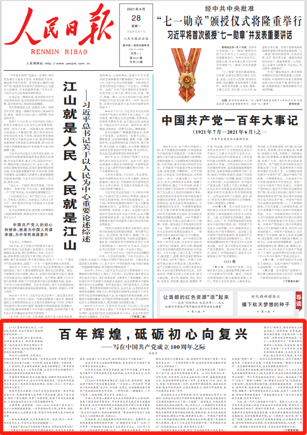 为庆祝中国共产党成立100周年,经党中央批准,中央党史和文献研究院编写了《中国共产党一百年大事记(1921年7月-2021年6月)》,全文约10万字。