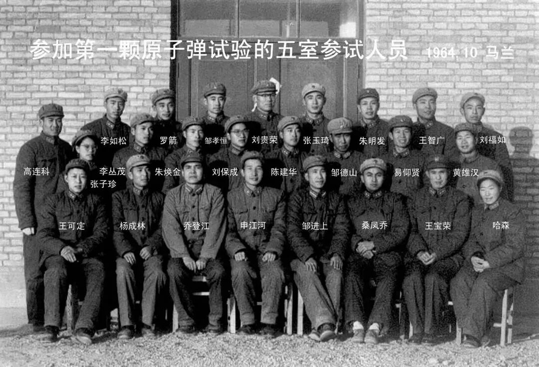 张玉琦(第三排右四)与参加我国第一颗原子弹试验的第五研究室人员合影