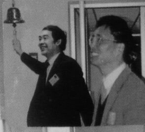 △1990年12月1日,王健敲响了深交所试营业钟声(王健提供照片)