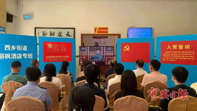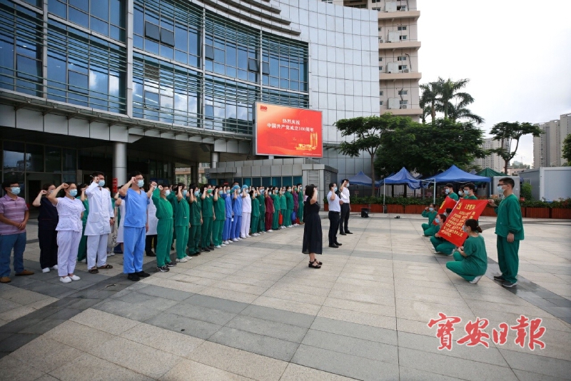 7月1日上午,宝安区委卫生健康工委组织所属医疗单位收听收看庆祝中国共产党成立100周年庆祝大会直播,并举行升国旗仪式,重温入党誓词,以多种方式庆祝中国共产党成立100周年。