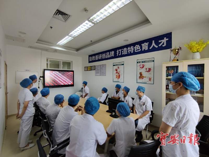 宝安区中心医院医务人员工作间隙集中观看庆祝中国共产党成立100周年直播。