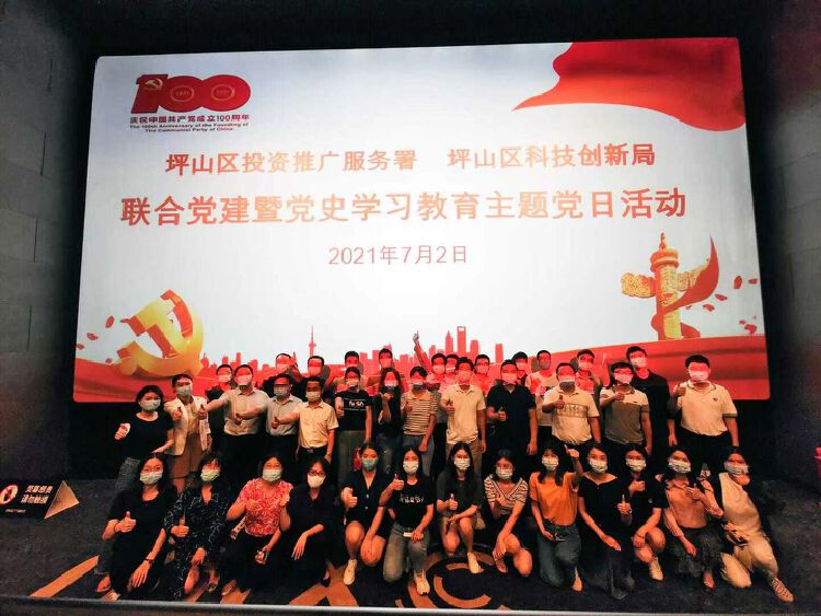 7月2日,坪山区投资推广服务署、坪山区科技创新局联合开展党建暨党史学习教育主题党日活动,组织全体党员干部集中观看庆祝中国共产党成立100周年献礼影片《1921》,重温中国共产党第一次全国代表大会召开这一波澜壮阔的历史事件。