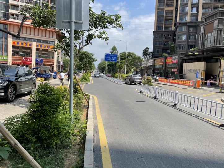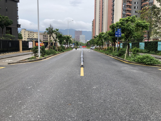 翠景南路涉及两个小区车辆进出,由于道路车辆违停及路口信号灯控制原因,早晚高峰期进出车辆拥堵严重,市民诉求强烈,坪山区有关部门在道路中央设置护栏,有效解决车辆违停、交通秩序混乱问题,并依据交通量对路口信号灯配时进行了调整,提高了通行效率。