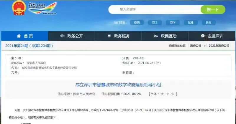 近期,深圳市政府公报发布消息,深圳新成立两个领导小组——深圳市智慧城市和数字政府建设领导小组、深圳市城镇老旧小区改造工作领导小组。