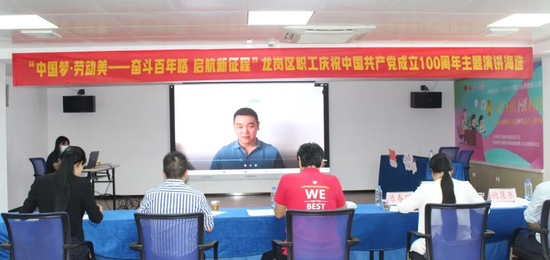 活动一经发布,便得到了龙岗广大职工朋友们的热烈响应,共收到了来自企业职工、教师、社区基层工作者、医护人员等101名职工的参赛作品。2021年7月9日,“中国梦·劳动美——奋斗百年路 启航新征程”演讲比赛初赛海选在龙岗区总工会综合服务大厅多功能室顺利开展,五位资深评委嘉宾对所有参赛选手的音视频材料进行逐一评分和点评,最终50名选手进入复赛阶段。