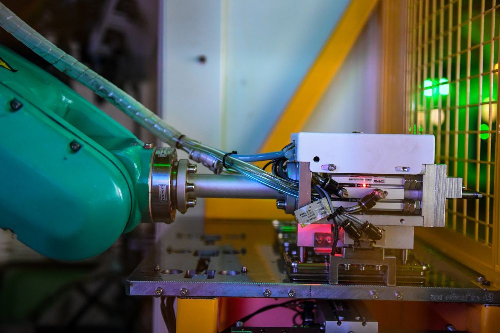 在深圳富士康龙华科技园数控机床精密加工智造熄灯工厂拍摄的机械臂。记者 毛思倩 摄