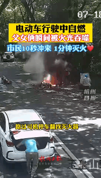7月18日中午11点多,杭州玉皇山庄附近,一辆电动自行车在行驶途中突然起火。电动车上一对父女烧伤严重,正在医院救治。