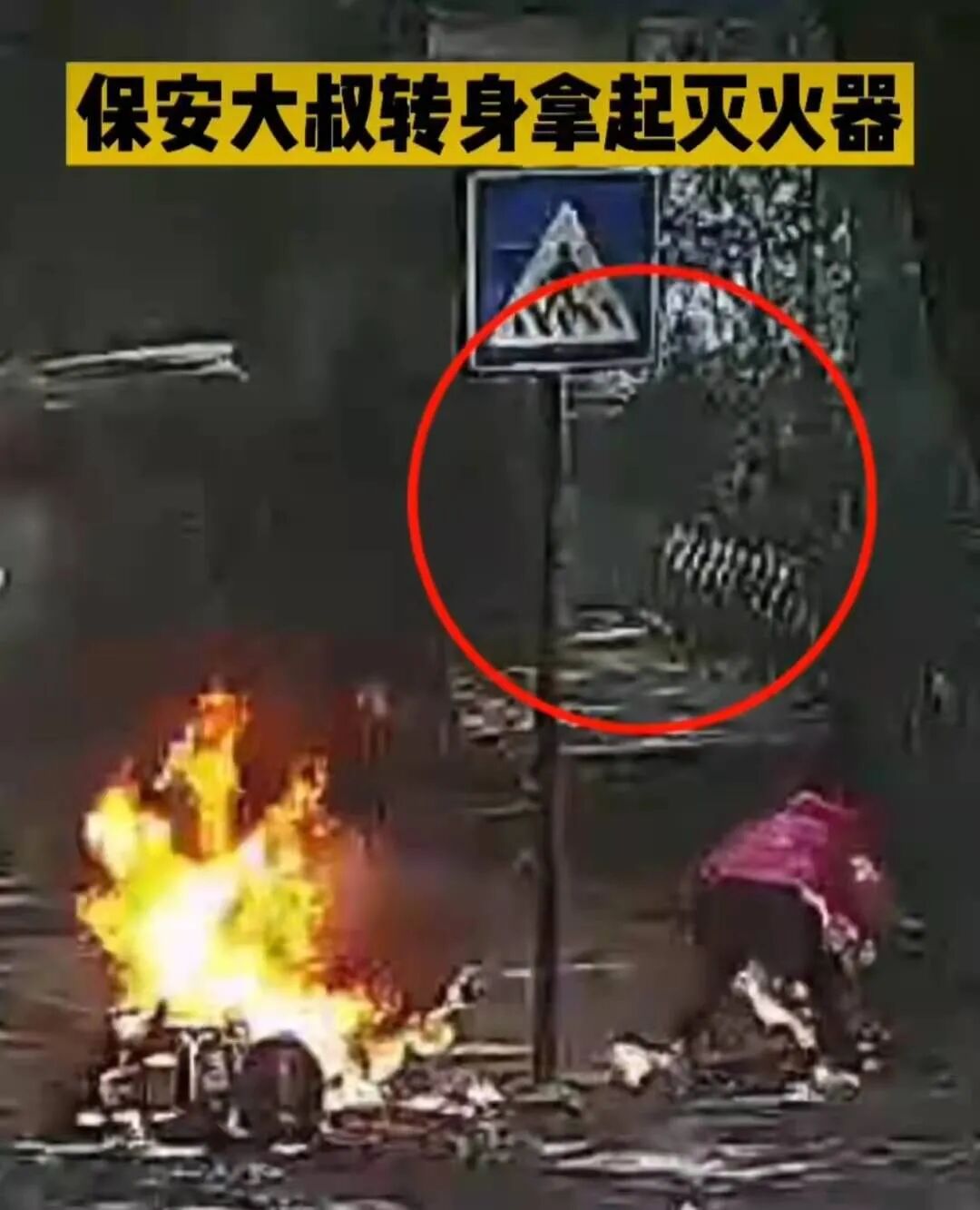 “当时我就听见一声巨响,然后就看见了火光。”现场的保安师傅庄永之是目击者之一。据了解,当时他听到响声后赶紧往路边去看,结果就看到一辆电瓶车倒在路边,火苗已经蹿得老高了。