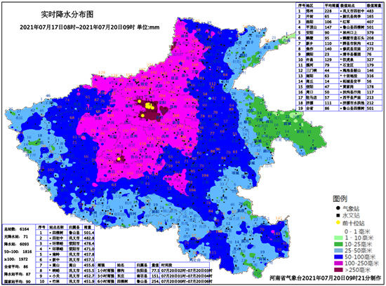 昨天,河南遭遇大范围极端强降雨,中西部、西北部地区出现成片的大暴雨,部分地区特大暴雨。监测显示,19日08时至20日08时,河南省内有794个站出现大暴雨,河南郑州和平顶山局地出现特大暴雨,其中,嵩山(364.6毫米)、新密(254.9毫米)、新郑(196毫米)、登封(192.8毫米)、偃师(183.3毫米)5个国家级气象观测站的日雨量已突破有气象记录以来极值;嵩山和新密站更是出现了历史同期首个特大暴雨。截至目前,河南省暴雨红色预警信号仍在生效中。