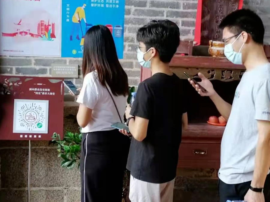 ▲游客通过“鹏游扫码学党史”自助式学习新区红色历史