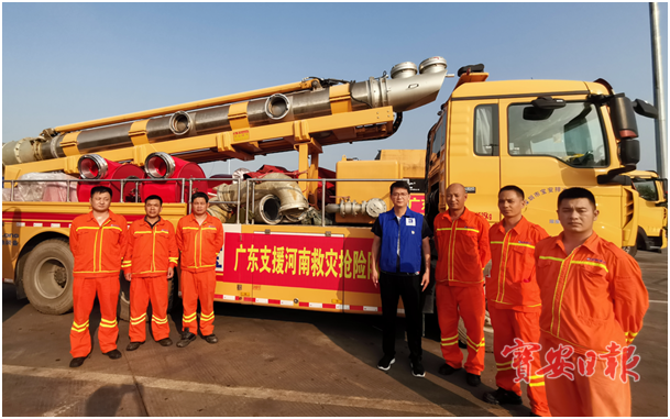 那一天凌晨,宝安排水有限公司的刘建昌、朱治国、刘燕、黄少勇、陈杰贤、吴汪、廖钮锋在接到紧急奔赴河南防汛一线的电话后,大家都毫不犹豫立刻出发。从23日凌晨5点离开宝安,到24日晚到达第一个任务点,他们千里跋涉,只想着能快一点,再快一点。
