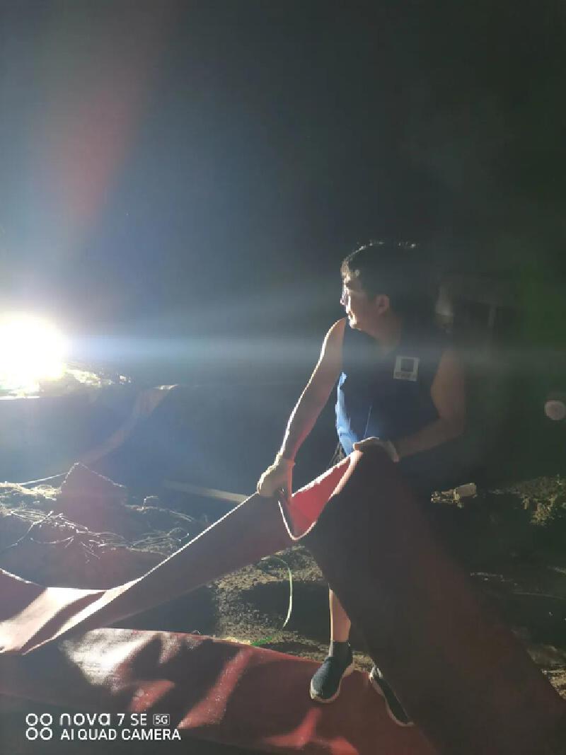 25日凌晨1点多,准备回住宿酒店的路上,刘建昌又接到电话,希望他到另外一个积水严重的小区看一看,他马上开车半个多小时来到现场,发现这里的情况不适合使用垂直供排水设备。回去休息的时候已经4:00多。睡了三个小时,刘建昌又赶回现场。