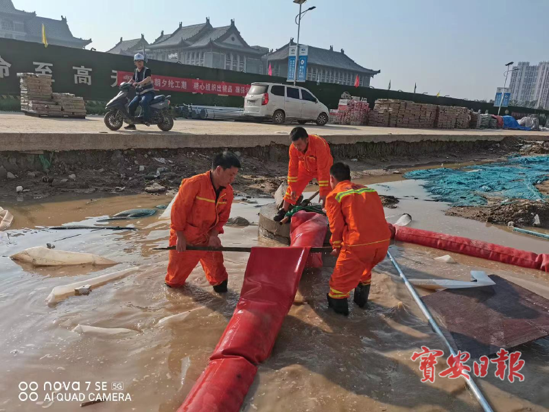 他们的任务点在位于郑东新区明理路与姚桥路交叉口向北500米的河南大学国际校区,这里因为九月就要投入使用,之前一直在全力赶工。不过这次暴雨过后,基坑里积了3米左右的水。