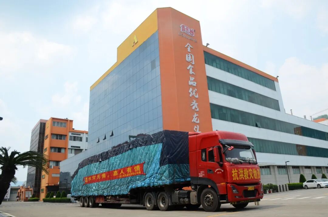 7月24日中午,嘉士利集团开平总部的爱心汽车整装待发。
