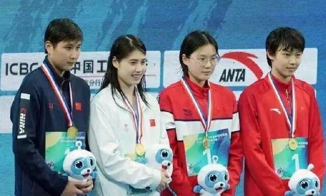 在5月5日举行的津辽苏鲁鄂粤联队女子4×200米自由泳接力比赛中,第三棒的汤慕涵与王简嘉禾、张雨霏、杨浚瑄配合默契,以7分59秒45的显著优势摘金。