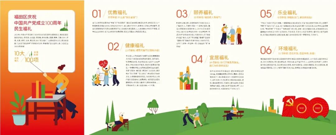 近年来,福田区高度重视“民生福礼”工作,坚持“感恩改革开放,回馈福田市民”。今年全部100项惠民举措原则上在7月至10月全部完成,并以今年建党100周年,以及正在开展的党史学习教育“我为群众办实事”,将100项民生实事,100%的诚意落实到工作中,落实到市民的生活改善中,让100%的诚意变成100%的努力。